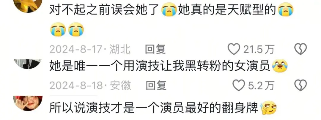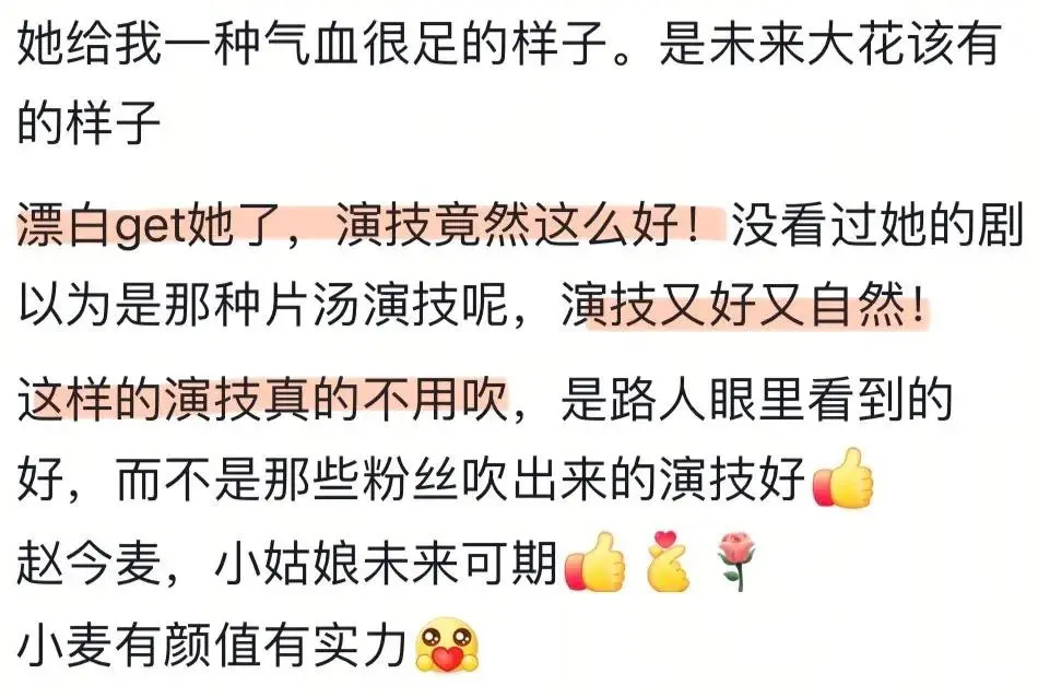 不过赵今麦的演技倒是没什么争议,路人盘也因此扩大了,算得上是流量与演技并存的00花。
