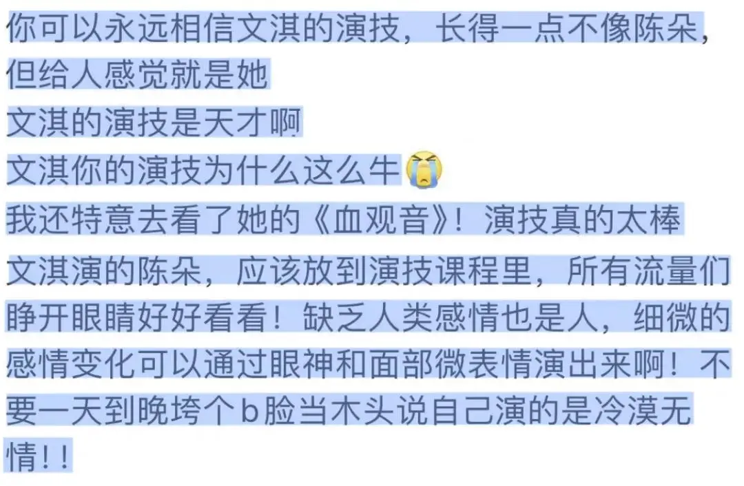 资源积压了那么久,文淇在00花里依旧备受期待的原因,当然还是她的表演质感。