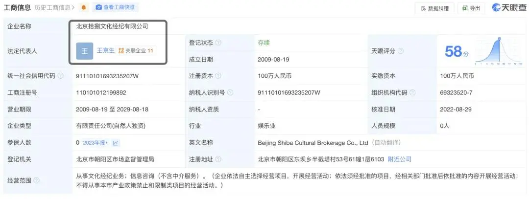 她所在的经纪公司拾捌文化,持股人是王京花,在业内享有“内地第一经纪人”的美誉。