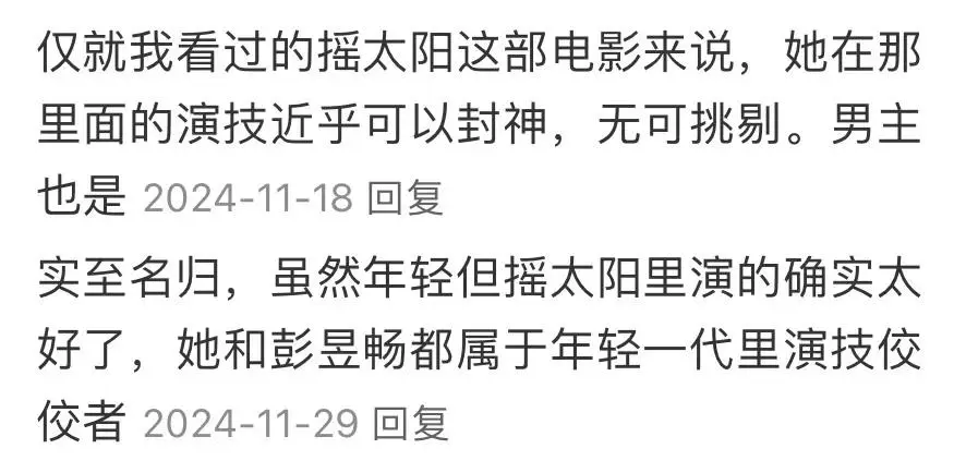 在《我们一起摇太阳》里的表现,好评也有不少⬇️